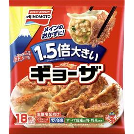 • 豚肉、鶏肉、キャベツ、たまねぎ、にら、にんにくを使用。1個あたりの重量が味の素従来品より1.5倍の、ひと口の満足度がアップした、メインのおかずにぴったりな餃子です。フライパンで水・油を使わず調理ができます。